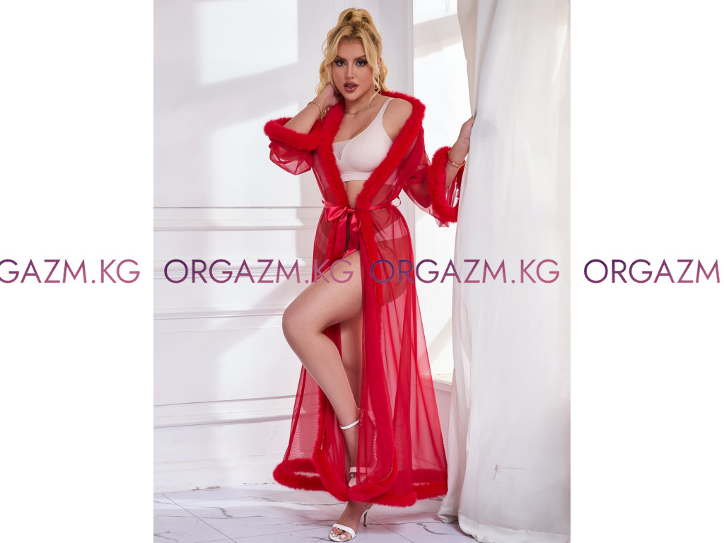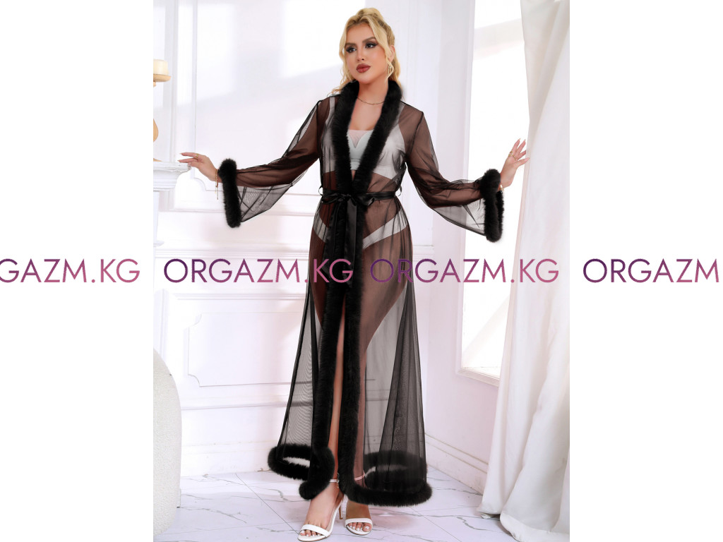Длинный Прозрачный сексуальный халатик с меховой отделкой R81759 отзывы