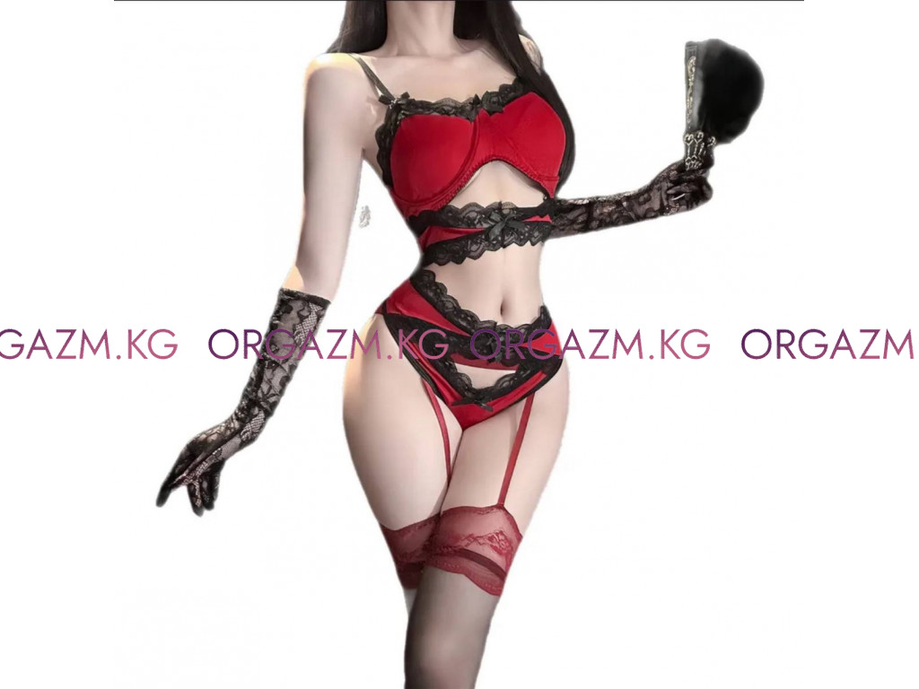 Красный секси-комплект белья с кружевами и чулками R21 отзывы