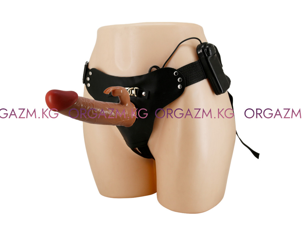 Мужской полый страпон с отростком для стимуляции клитора и с вибрацией "Pretty Love Marion" 7,4"